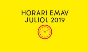 Us informem que l’horari d’emav d’atenció al públic del 17 al 22 de Juliol de 2019 (durant el període de matriculacions) serà de 09:30 a 13:00 hores.